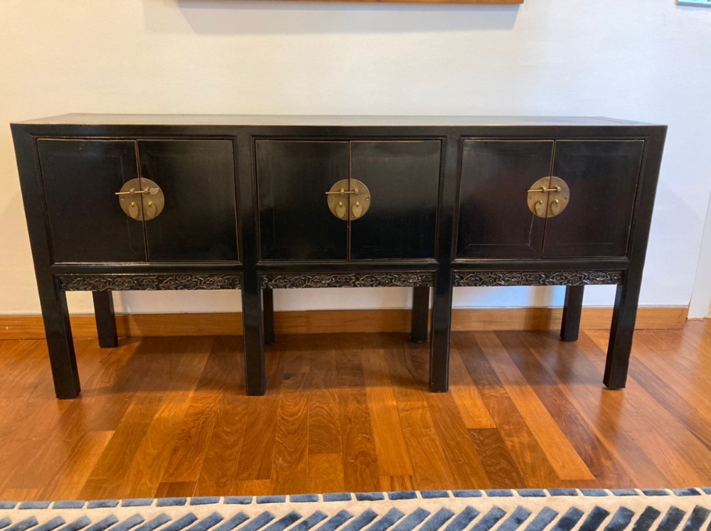 Black Custom Wooden Sideboard With 3 Doors / Papan Sisi Kayu Tersuai Hitam Dengan 3 Pintu