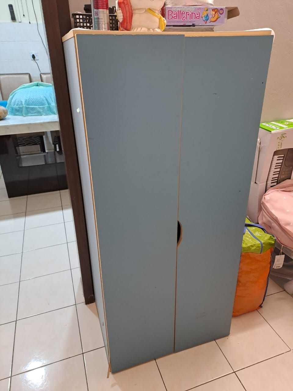 Blue Wooden Wardrobe Cabinet / Kabinet Almari Pakaian Kayu Biru