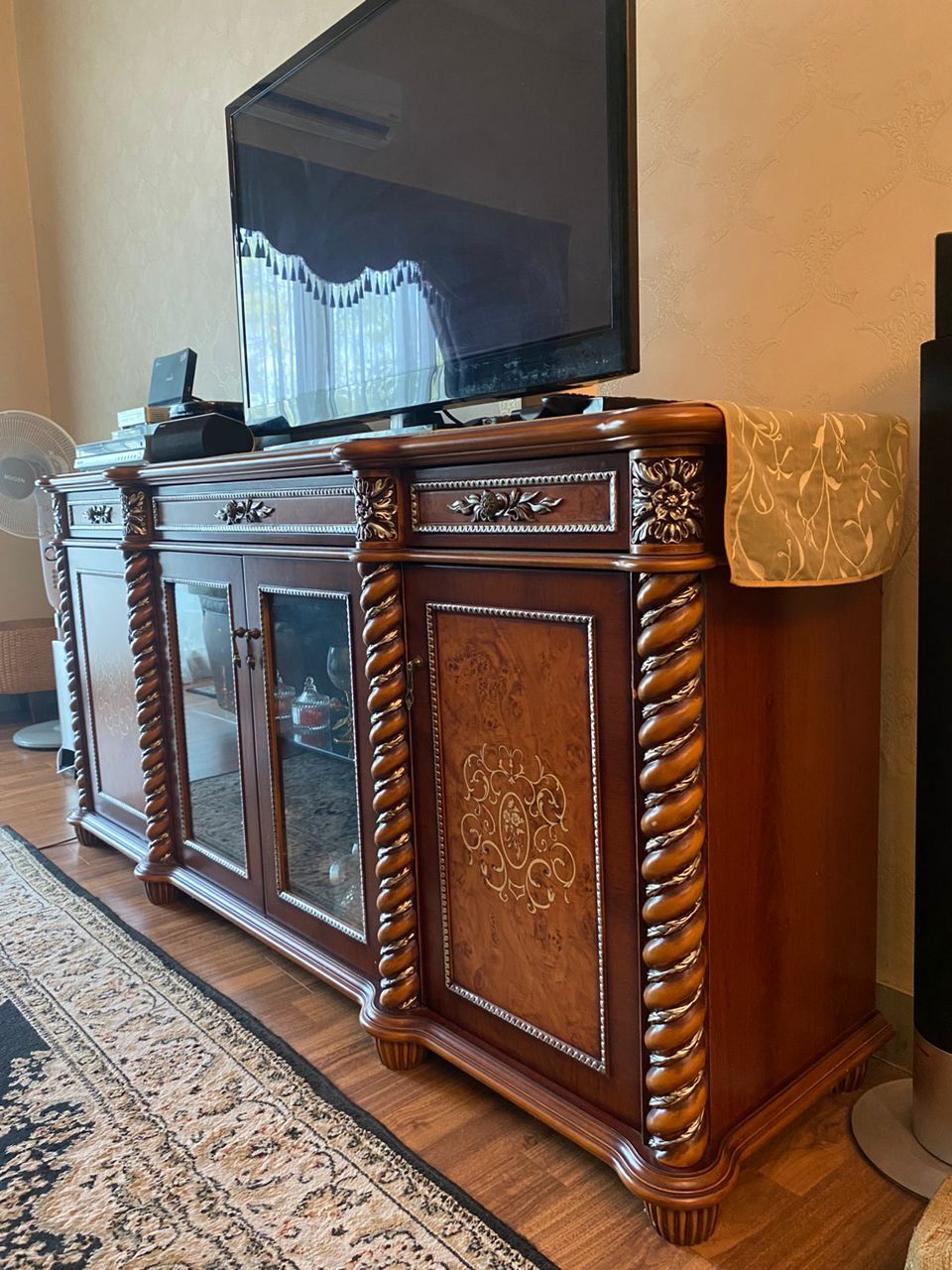 Custom Vintage Wooden Tv Cabinet With 3 Mirrors / Kabinet Tv Kayu Vintaj Dengan 3 Cermin