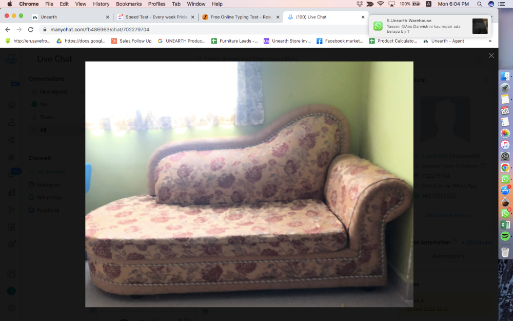Floral Pattern Chaise Lounge Neutral Colour / Corak Bunga Chaise Lounge Warna Neutral