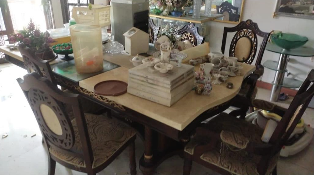 Marble 6 Seater Dining Table Cream Colour set with (30/31) / Warna Krim Meja Makan Marmar 6 Tempat Duduk
