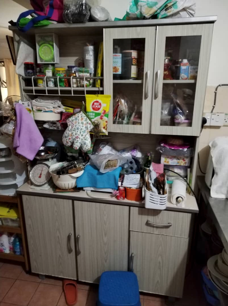 Multi Storage Wooden Kitchen Cabinet With Rack / Kabinet Dapur Kayu Berbilang Penyimpanan Dengan Rak