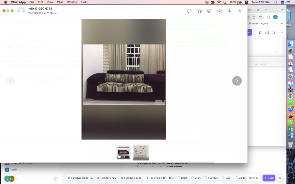 Purple Fabric 2-seater Sofa set with (64/66) / Set Sofa 2 tempat duduk Fabrik Ungu dengan (64/66)