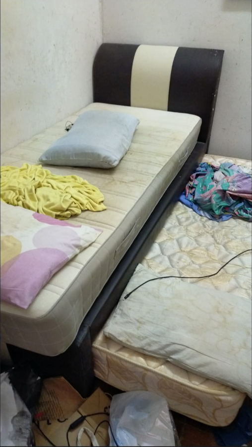 White & Black Striped PU Leather Single Bed Frame