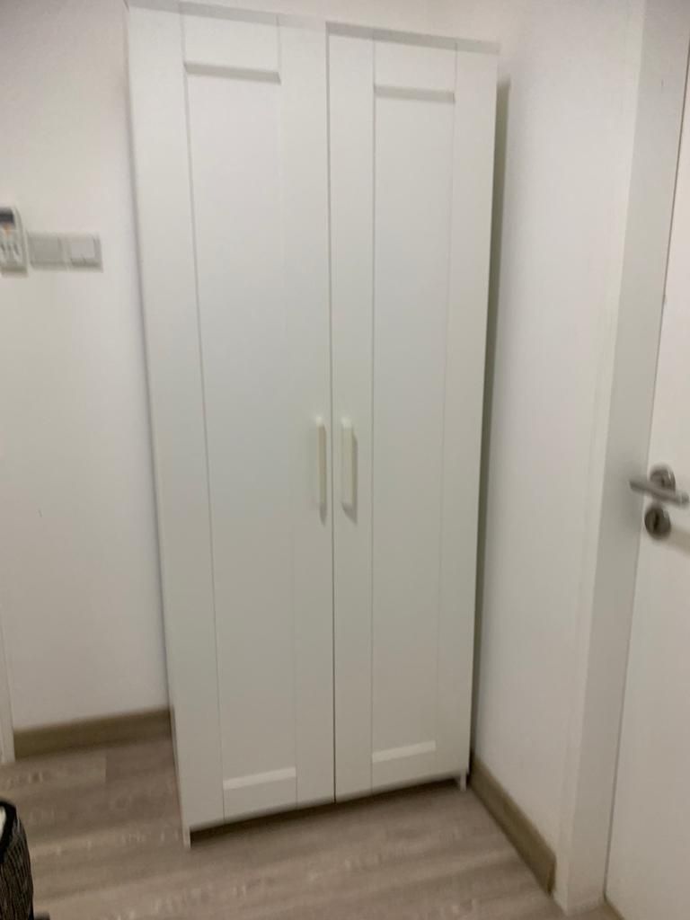 White Wooden 2-Door Wardrobe / Almari Pakaian 2 Pintu Kayu Putih