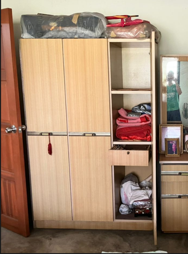 Wooden 2-Tier 3-Door Wardrobe with Gloss Finish / Almari Pakaian Kayu 2 Tingkat 3 Pintu dengan Kemasan Berkilat