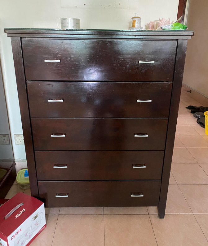 Wooden 5-tier Chest of Drawers Dark Brown Colour / Almari Laci 5 tingkat Kayu Warna Coklat Gelap