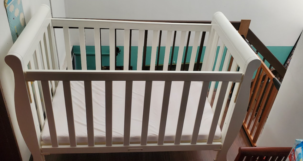 Wooden Baby Cot with Rollers White Colour / Katil Bayi Kayu dengan Penggelek Warna Putih