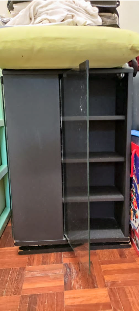 Wooden Cabinet 4 Layer with Glass Swing Door Black Colour / Kabinet Kayu 4 Lapisan dengan Pintu Buaian Kaca Warna Hitam
