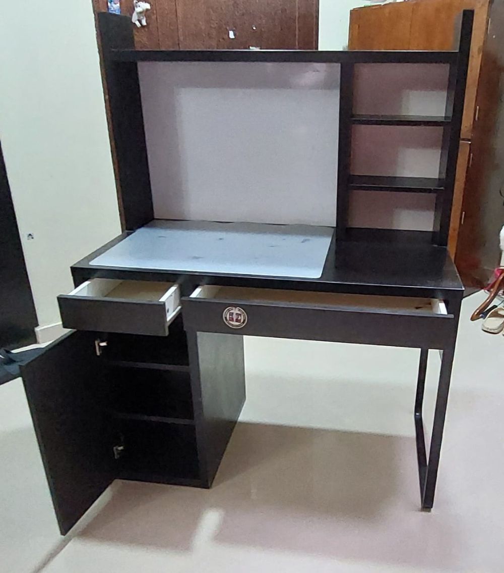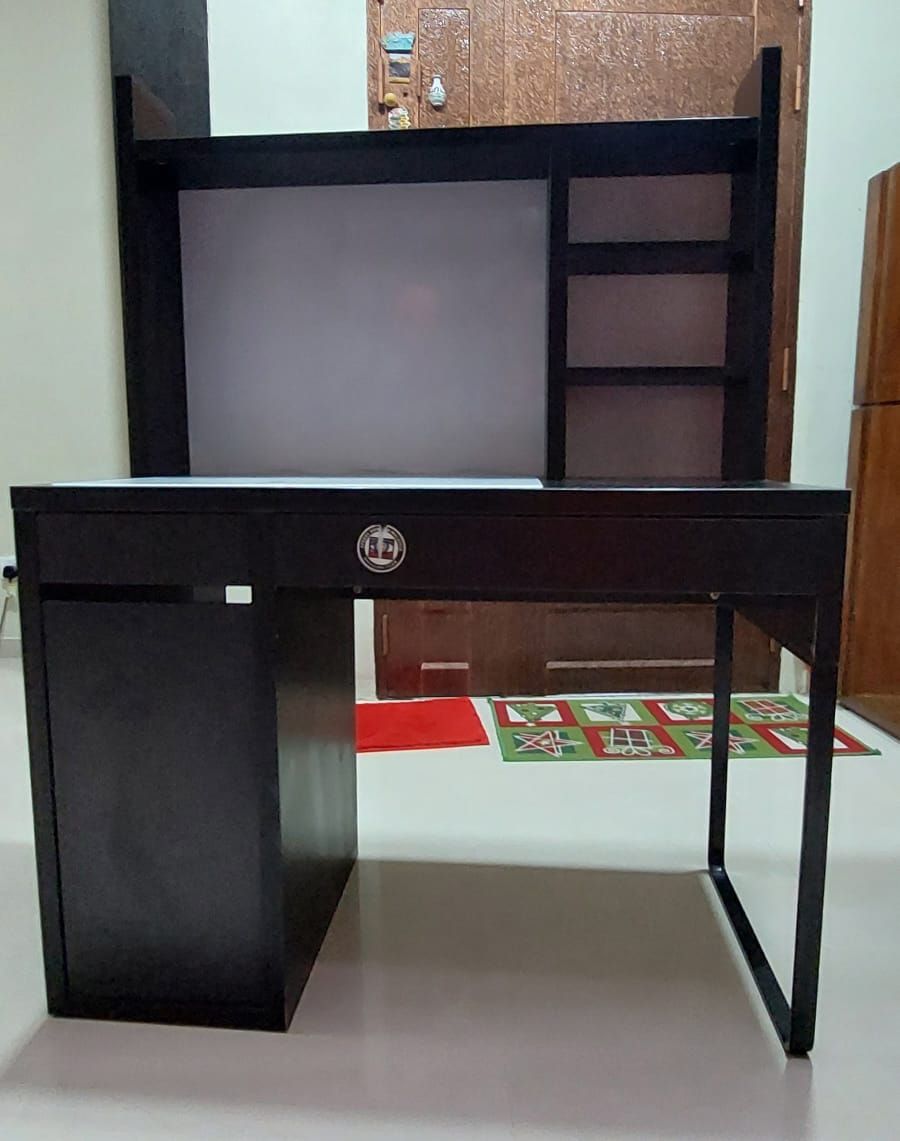 Wooden Computer Desk with Shelving Unit Black Colour / Meja Komputer Kayu dengan Unit Rak Warna Hitam