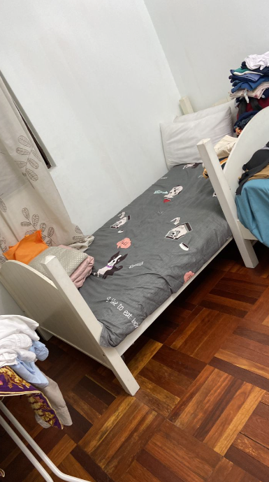 Wooden Single Bed Frame White Colour / Rangka Katil Bujang Kayu Warna Putih